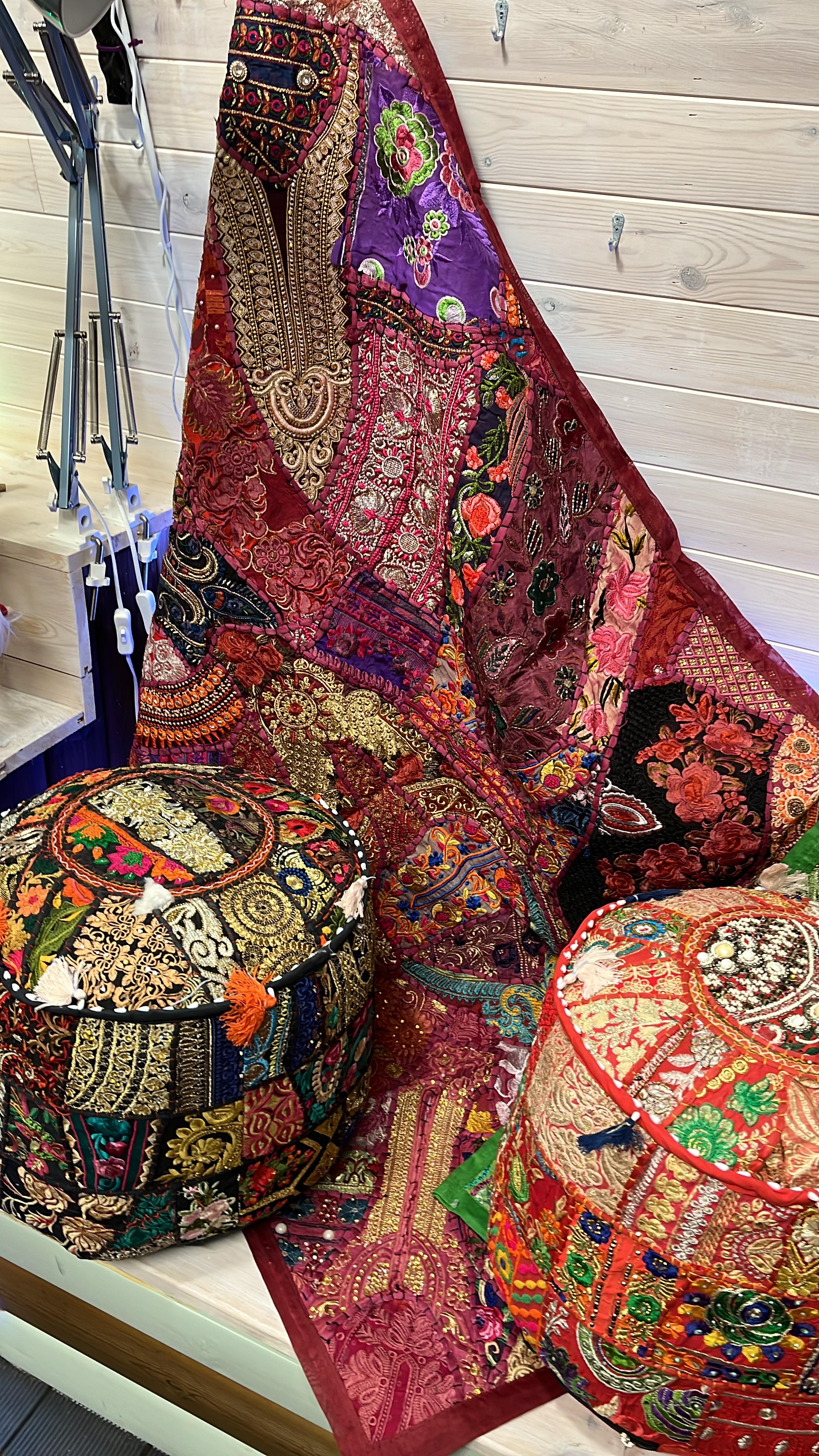 Discover our exquisite collection of Indian wall and door hangings, along with our vibrant Patchwork Pouffes, each handcrafted from carefully selected vintage fabrics and wedding saris, as well as upcycled materials. Additionally, we offer an enchanting array of Paper Star Lanterns.