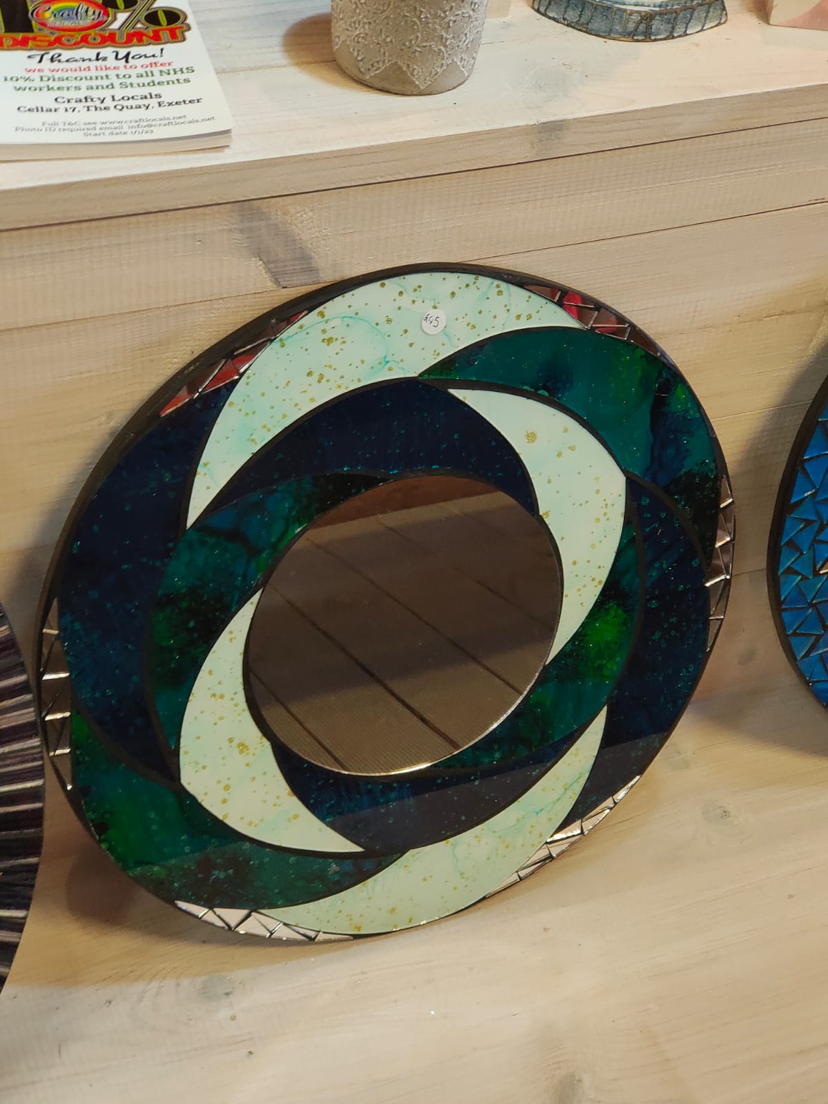 Our mirrors feature exquisite hand-painted and hand-cut glass, with every element meticulously crafted by skilled artisans. The glass is thoughtfully layered atop the base and grouted by hand, adding a vibrant touch of colour to any room.